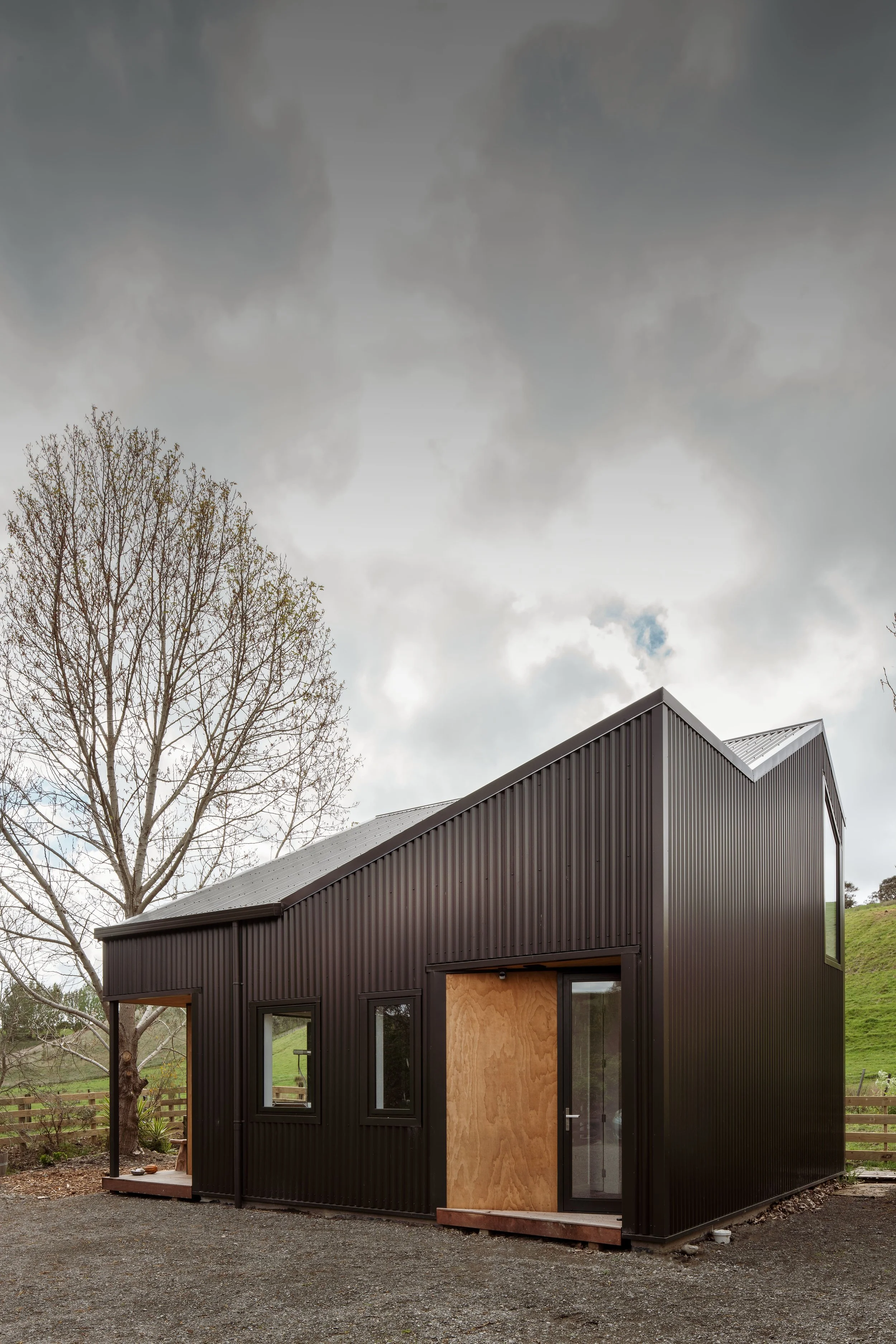 The Ponatahi Artist’s Studio sits on a small lifestyle block just outside Martinborough in the Wairarapa. ‘One of the owners is a painter, and this studio was designed as a dedicated space at the bottom of their property where she could work independently from the main house,’ explains architect Katie Gunn of Aspect Architecture.